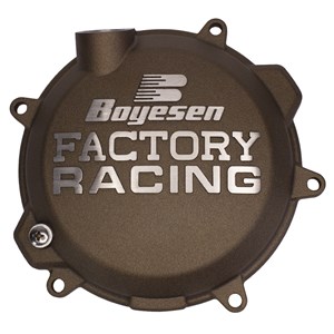 Set your bike apart from the rest with the ultimate look in race performance. Legends of the sport have all helped to make the Factory Racing brand of clutch covers a recognizable part of motocross and off-road racing history that still lives on today. Add style and the Factory look to your bike with a Boyesen Factory Clutch Cover. Exterior grade, UV resistant powder coat finish is available in Black, Magnesium, Race Red, Race Blue, as well our new factory matte orange to perfectly match KTMs. Made from investment cast aluminum, the Factory Cover is strong, lightweight, and durable providing years of outstanding protection. In Motocross and Offroad, the phrase “Factory Racing” means performance! No other product showcases a rider’s commitment to the roots of racing like Boyesen’s Factory Racing Clutch and Ignition covers
